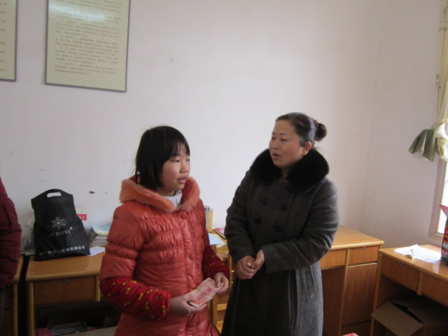 思聪中学领导和班主任见证了谭慧萍书记的捐赠,并表示要把伍星丽同学当做学校的帮困对象之一,确保孩子学习不受干扰,顺利完成义务教育。
