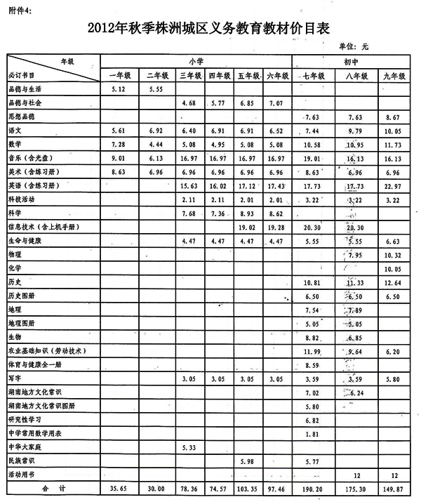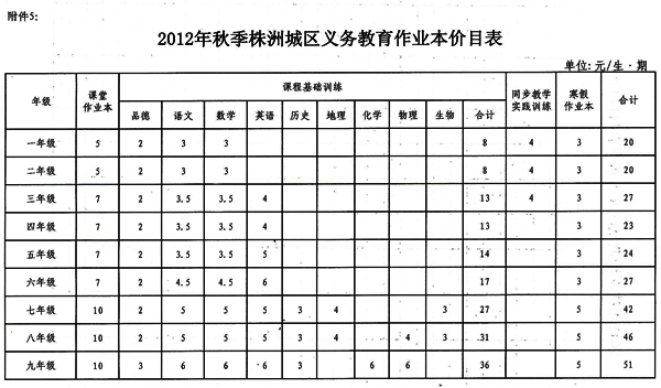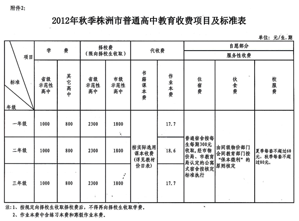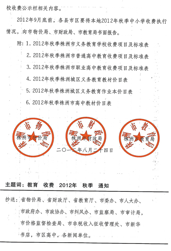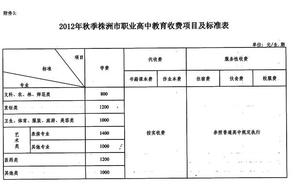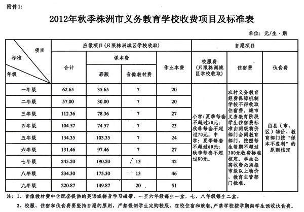 附件:关于2012年秋季株洲市中小学收费事项的通知