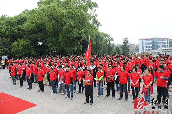 红网茶陵站4月28日讯(记者 彭彧 通讯员 谭国文) 4月27日上午8点,县烈士陵园里人声鼎沸。“忆峥嵘岁月·到群众中去”——茶陵县首届大型徒步毅行活动在此正式启动,旨在深入开展党的群众路线教育实践活动,磨砺党员干部坚忍不拔的意志和吃苦耐劳的精神,弘扬团结协作的风尚,以良好的精神风貌,勤奋务实,为民服务。