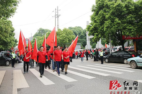 千余名毅行者兴致高昂,唱着慷慨激昂的红歌,从《团结就是力量》到《没有共产党就没有新中国》,一路浩浩荡荡开始了这趟“毅行”之旅。队伍从县烈士陵园出发,经犀城广场、洣江大桥、下瑶村、大洲村、雅环村、湖塘村等到达汽车东站,全程15公里。