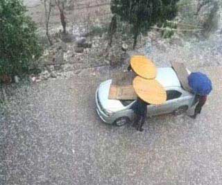 20日晚,红网论坛的网友们爆料,衡南县云集镇和郴州市永兴县两地下起了冰雹。由于没有准备,很多正在行驶中和停在室外的车辆都被砸了个面目全非。在论坛的帖文中,有一家人冒着被冰雹砸伤的危险,抬着圆桌面板和木板去保护爱车。21日,记者联系上资深理赔员得知,购买了车损险的车辆,被冰雹砸坏了,保险公司一般是可以赔付的,应该及时与保险公司联系并拍照留证。(红网)