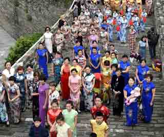 17日,旗袍秀队伍在明城墙上巡游展示。当日,江苏南京举行“百人城墙旗袍秀”活动,由150多人组成的旗袍走秀队伍在玄武湖畔的明城墙上巡游、表演。此次城墙旗袍秀是第二届南京网友节组织的一场文化主题活动。(新华网)