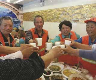 图:扬州一饭店老板请环卫工尝海鲜大餐