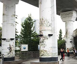 图:长沙开福区“彩妆”扮靓桥墩立柱