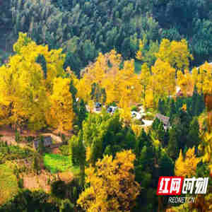 图:金黄的银杏叶,给桐子坳村铺出了一条“绿色黄金”的致富路。