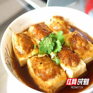 宜章酿豆腐制作工序类似北方的包饺子,要准备豆腐,还要准备包的馅料,如葱、肉、姜、蒜等,蒸或者煮熟以后才可以食用。宜章每年的“团年”菜中,酿豆腐是必不可少的。四四方方的的大块团子肉,和圆圆滚滚的酿豆腐,两道菜合起来意喻团团圆圆。(红网)