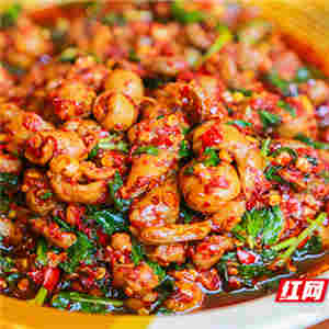 汝城十大地方特色菜,2017年被央视《味道》栏目重点介绍。把新鲜的猪小肠反复清洗20遍,去除小肠内多余的油脂,然后将整条小肠手工打结,在开水中把小肠煮到七成熟,之后放到冰箱中冷却,进一步增加小肠的脆度。用薄荷叶和汝城特有的小米辣椒作为佐料,把冷冻过的小肠结切成小段,炒锅入油,放入蒜头、小肠结、盐适量,放入薄荷叶、辣椒粉、老抽炒香勾芡起锅即可。在团年饭餐桌上,可以尽情感受小肠的的Q弹可口,肥而不腻,脆而不烂,清香的薄荷嵌入浓郁的肉汁,浓香醇厚,加上小米椒变态的辣,美味层层铺开。(红网)