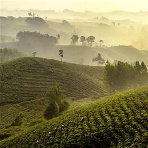 图:茶农在河南省信阳市浉河区的生态观光茶园采摘茶叶(2018年4月28日摄)。
