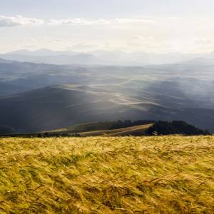 图:在新疆木垒哈萨克自治县,成熟的小麦在夕阳照射下散发出迷人的金色(2018年8月26日摄)。