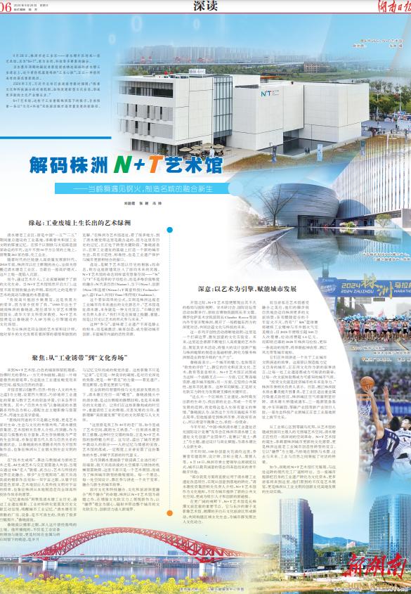 9月28日,株洲市老工业区——清水塘片区迎来一座艺术馆,名为“N+T”,意为自然、科技等多要素的融合。