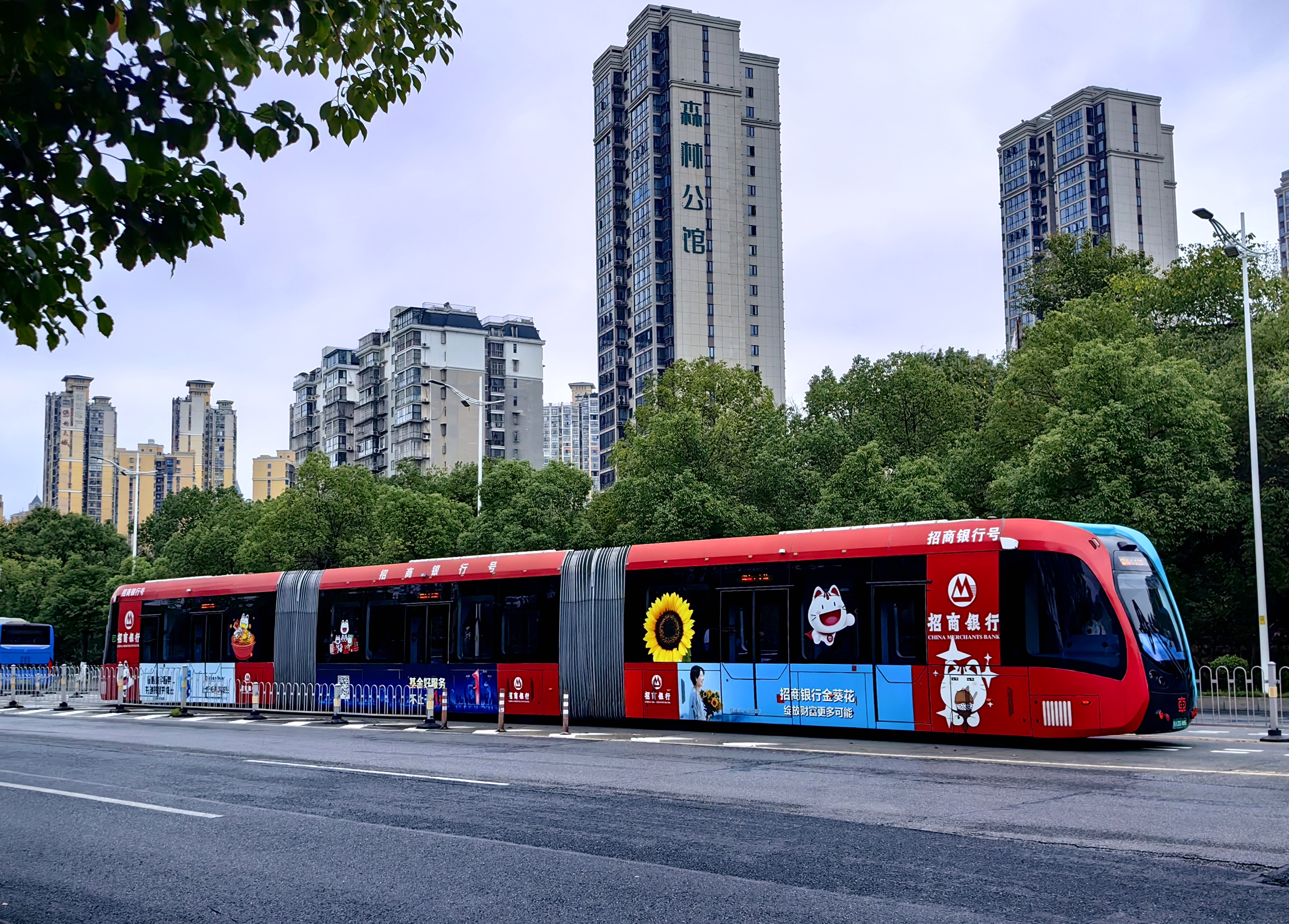 9月24日拍摄的行驶在株洲街头的“智轨列车”(苏晓洲 摄)