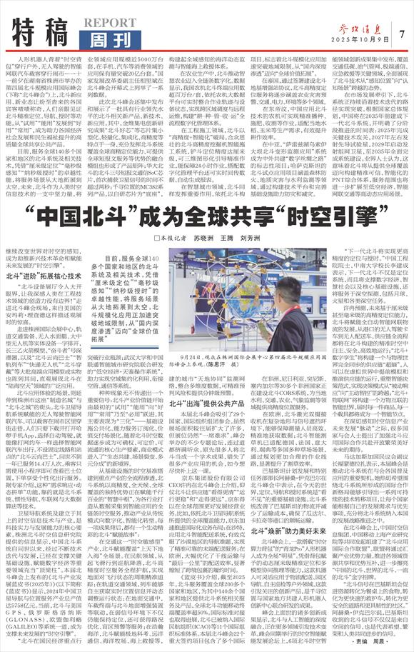目前,服务全球140多个国家和地区的北斗系统及相关技术,凭借“厘米级定位”“毫秒级感知”“纳秒级授时”的卓越性能,将服务场景从大地拓展到太空。未来,北斗作为人类时空信息技术的一支中坚力量,将继续改变世界对时空的感知,成为助推新兴技术革命和赋能未来发展的“时空引擎”。