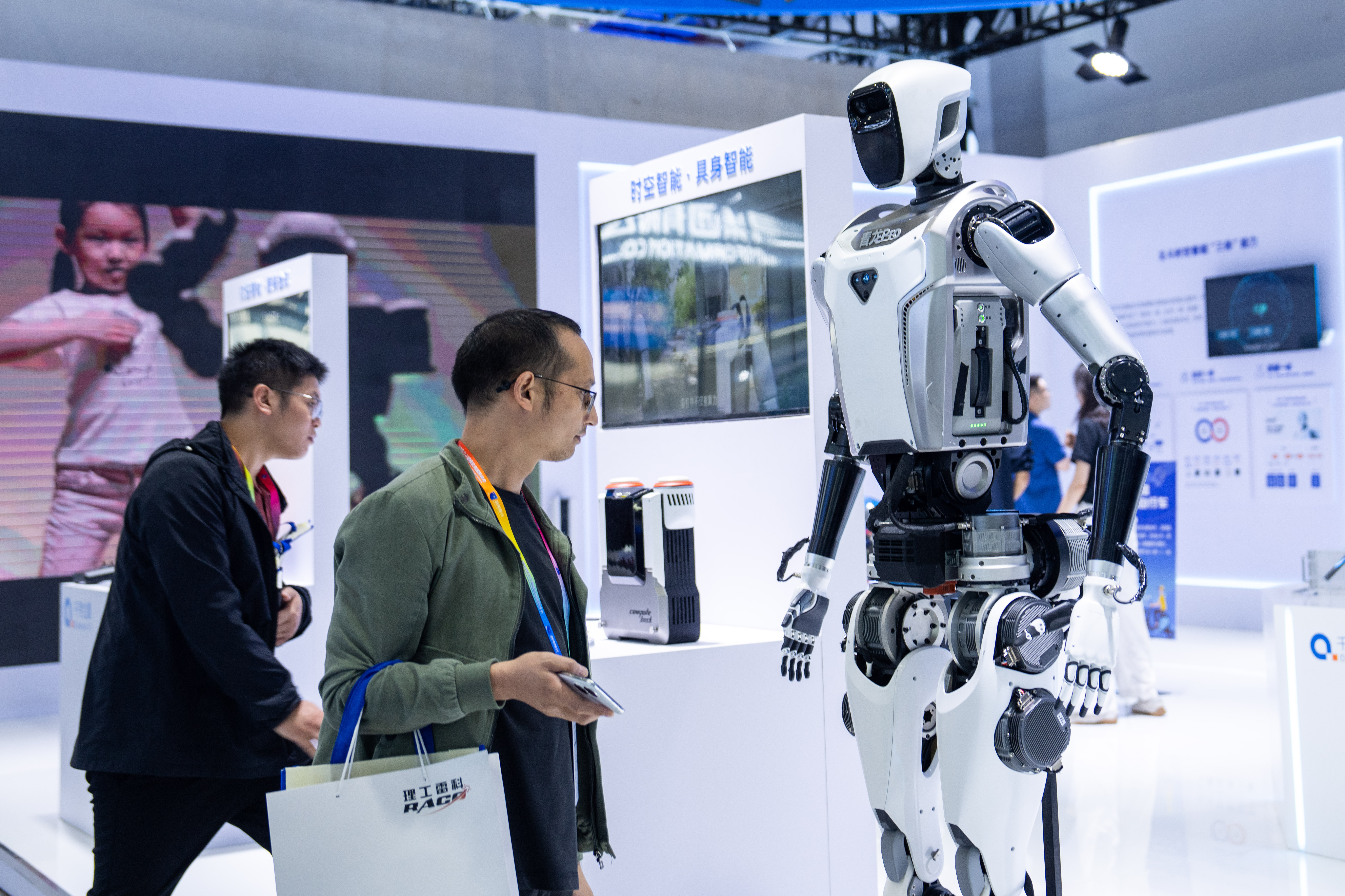 9月24日,在株洲国际会展中心,观众在了解搭载“时空算力背包”的“青龙Pro”人形机器人。(陈思汗 摄)