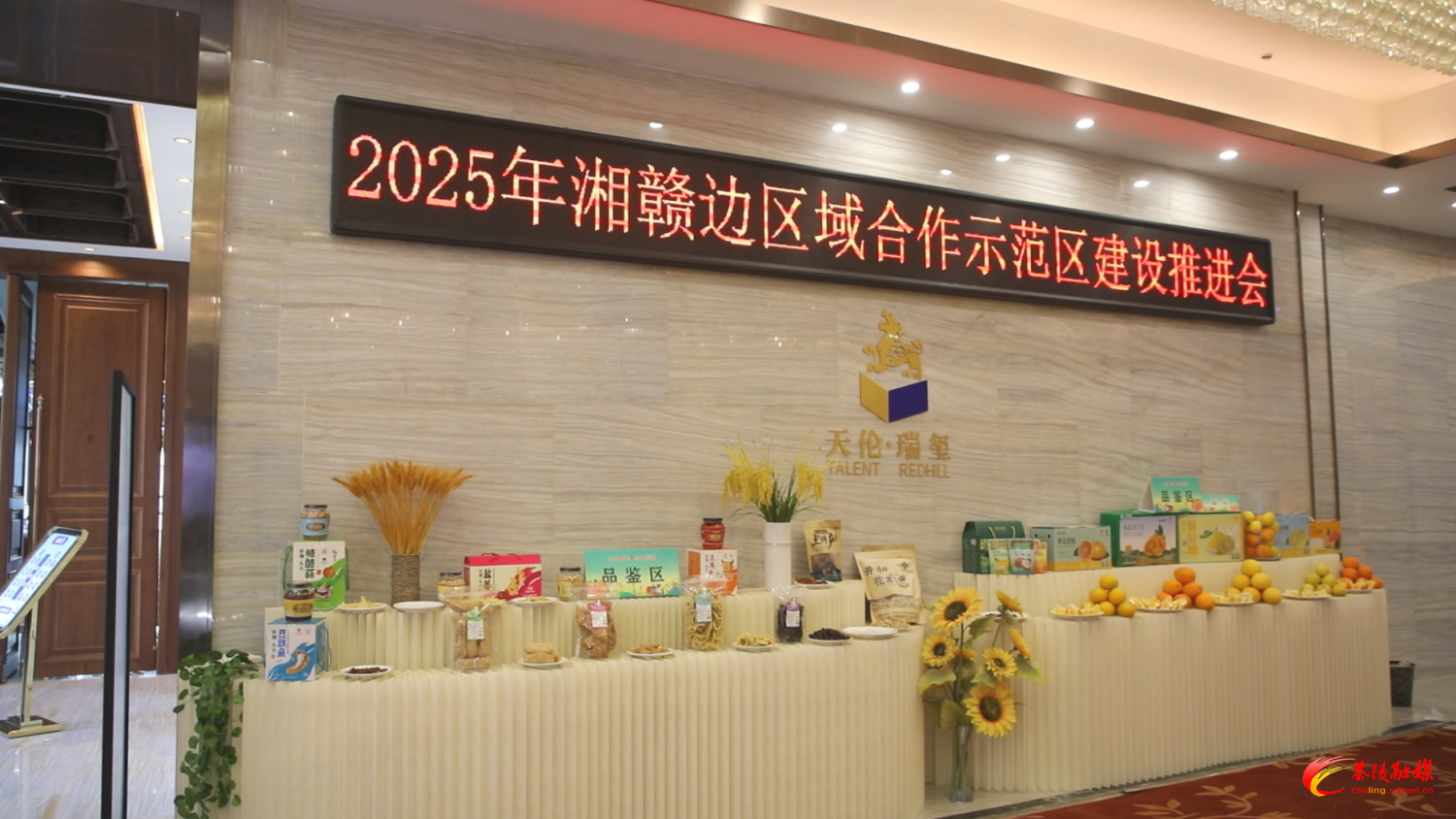12月20日,湘赣边区域合作示范区建设推进会在茶陵召开。推进会期间,一场汇集湘赣边24个县市区百余种农产品的集中展示活动在会场外同步举行,供与会嘉宾试吃品鉴。除此之外,现场还设立了多个电商直播间推广茶陵特色农产品,成功将线下展销热度延伸至网络空间,实现了“线下体验、线上下单”的融合模式,有效扩大了湘赣边优质农产品的传播力和影响力。